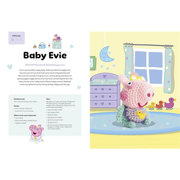 This collection of over 20 adorable toys features Peppa, George, Mummy Pig, Daddy Pig, and the newest addition, Baby Evie! Plus crochet Peppa's playgroup friends including Suzy Sheep, Danny Dog, Emily Elephant and more. With clear instructions and step-by-step guidance, you'll learn how to create cute and cuddly crochet toys that are perfect for play or as special gifts.