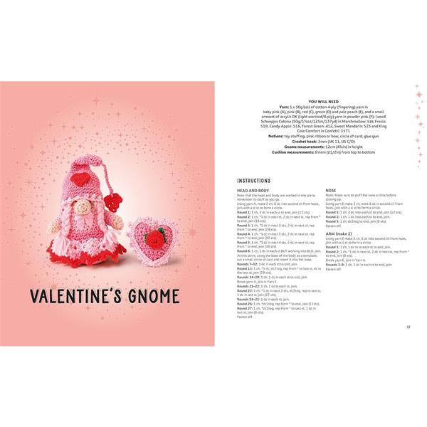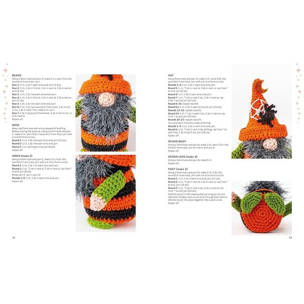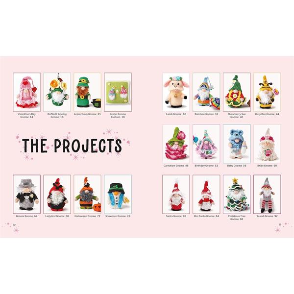 With an average height of between 14 and 16.5cm (5.5-6.5in), plus the smaller keyring and larger pillow projects, these friendly little gnomes are the perfect way to make use of your yarn stash.