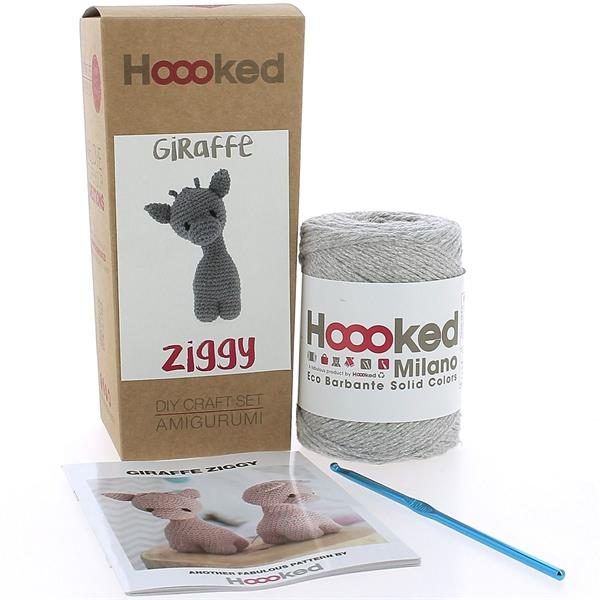 Ziggy is 20 x 8 cm (7.9 x 3.1in). This complete great DIY crochet set consists: - 200 g. Milano Eco Barbante cotton yarn - 1 Bamboo crochet hook - black left over for finishing touch - Hoooked pattern i.c.w. Oekimoekie