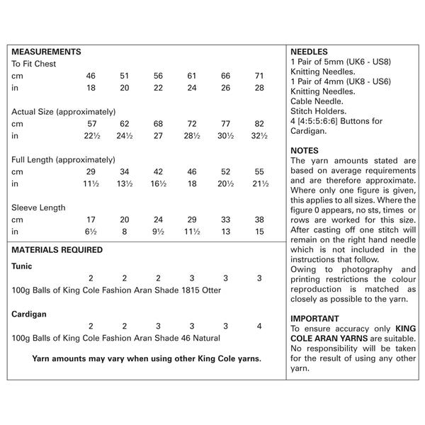 • King Cole Pattern 4561 Raglan Tunic & Cardigan