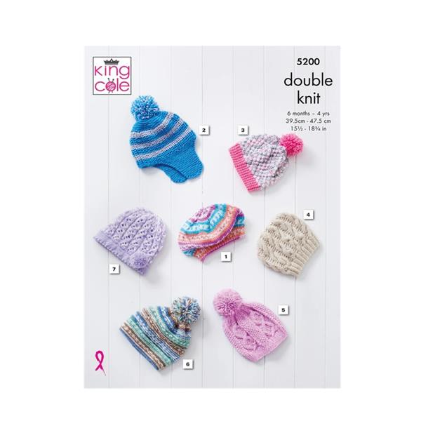 King Cole Pattern 5200 Knit Baby Hats in DK