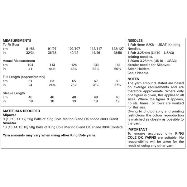 King Cole Pattern 6035 Slipover & Sweater in Merino Blend DK