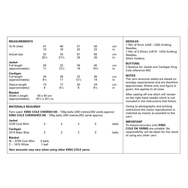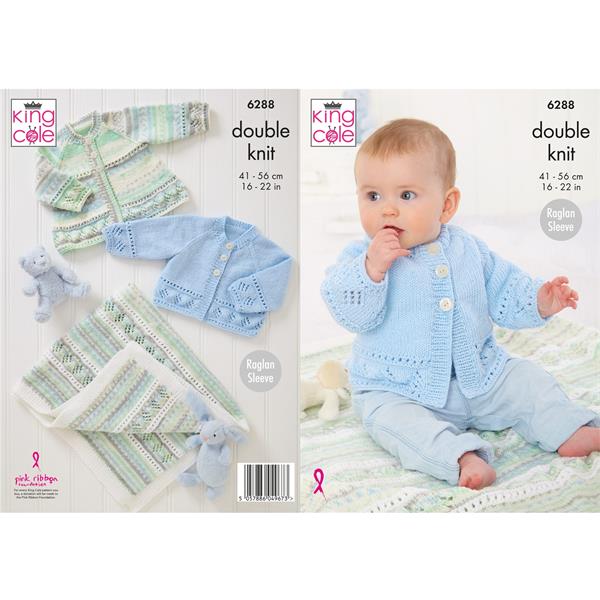 King Cole Pattern 6288 Jacket, Cardigan and Blanket in Cherish DK and Cherished DK