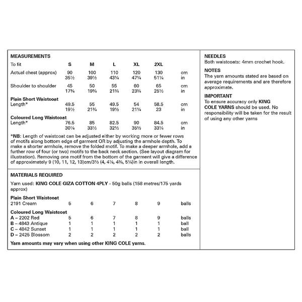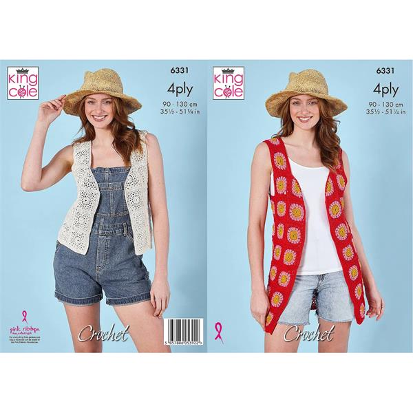 King Cole Pattern 6331 Waistcoats Crocheted in Giza Cotton 4Ply