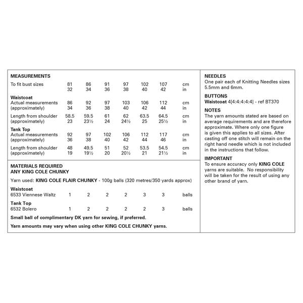 King Cole Pattern 6382 Waistcoat and Tank Top in Flair Chunky