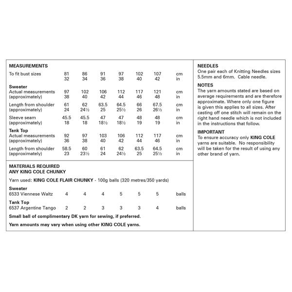 King Cole Pattern 6385 Sweater and Tank Top in Flair Chunky