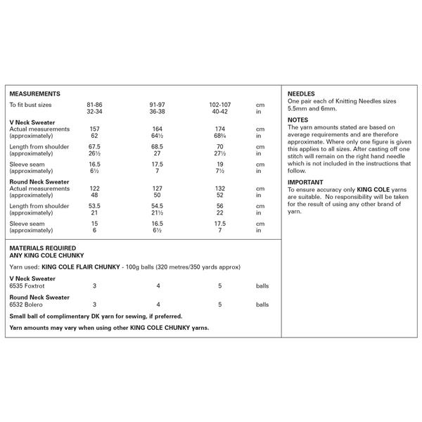 King Cole Pattern 6386 Sweaters in Flair Chunky