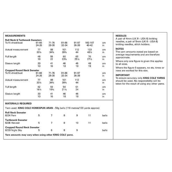 King Cole Pattern 6418 Family Sweaters in Aran