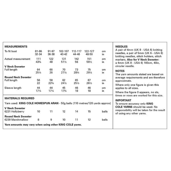 King Cole Pattern 6419 Ladies Sweaters in Aran