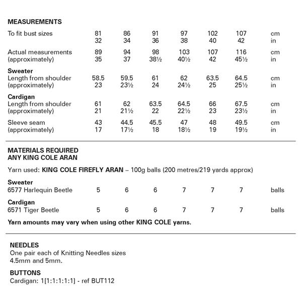 King Cole Pattern 6446 Sweater & Cardigan in Firefly Aran