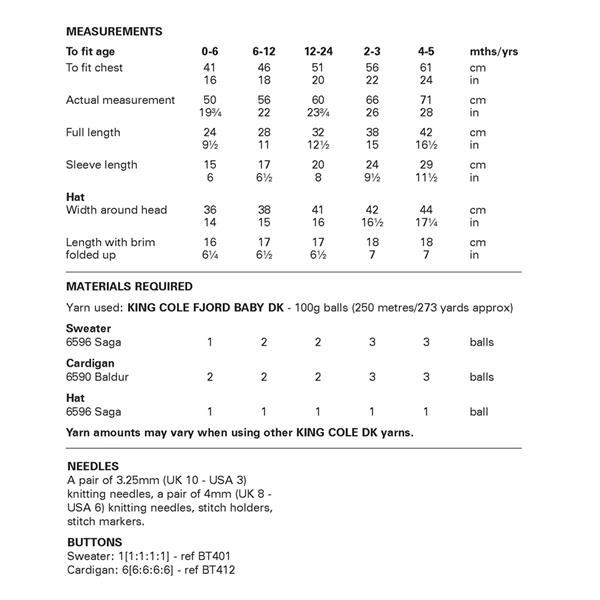 King Cole Pattern 6461 Baby Sweater, Cardigan and Hat in DK