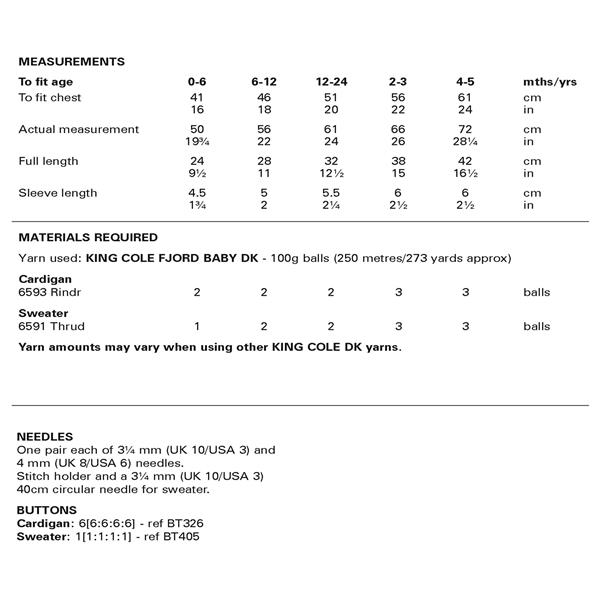King Cole Pattern 6465 Baby Cardigan & Sweater in Baby Fjord DK