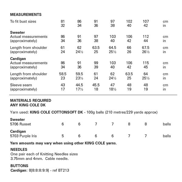 • King Cole Pattern 6470 Sweater and Cardigan in Cottonsoft DK