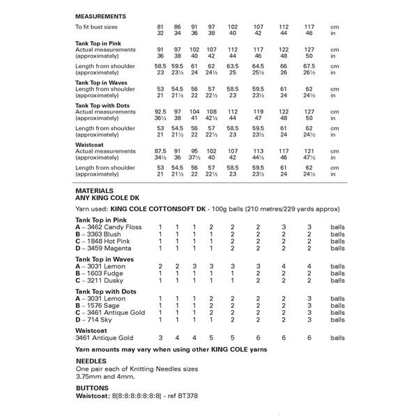 King Cole Pattern 6472 Tank Tops and Waistcoat in Cottonsoft Dk