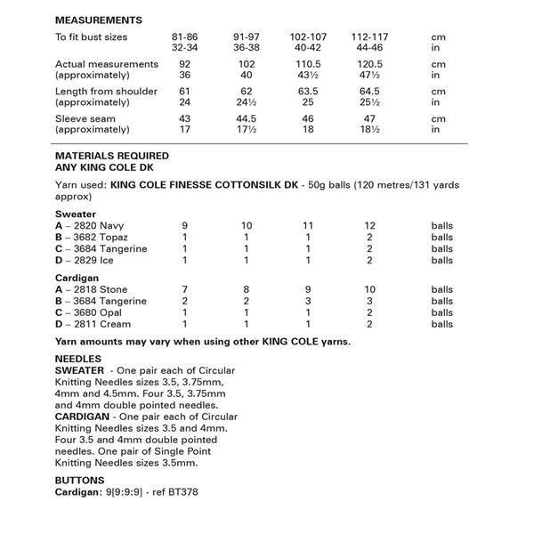 • King Cole Pattern 6473 Sweater and Cardigan in DK