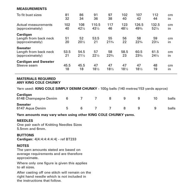 • King Cole Pattern 6477 Sweater and Cardigan in Chunky