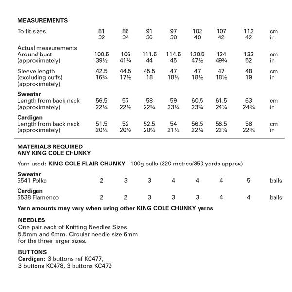 King Cole Pattern 6480 Sweater & Cardigan in Flair Chunky