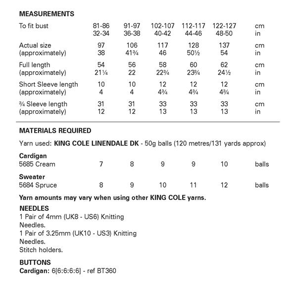 • King Cole Pattern 6482 Sweater and Cardigan in DK