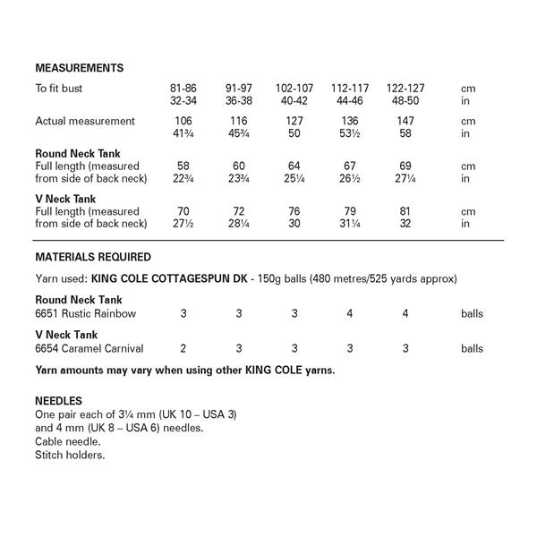 • King Cole Pattern 6497 Ladies Round and V Neck Tanks in Cottagespun DK