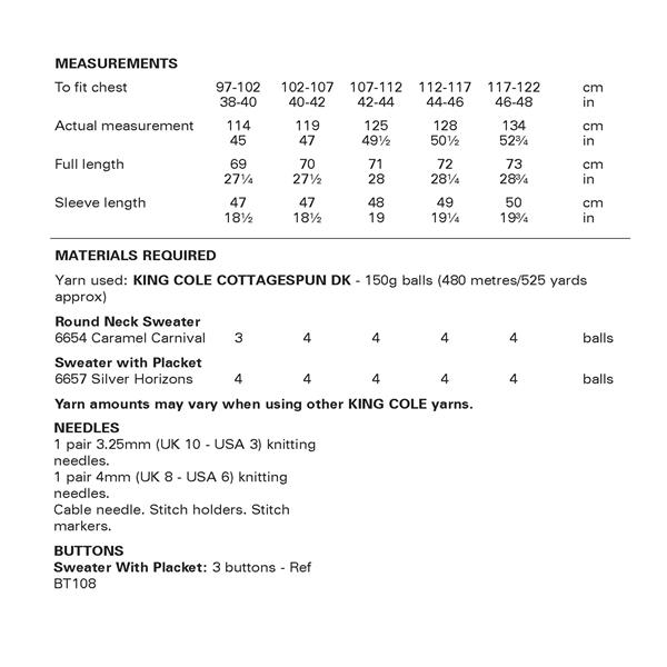 • King Cole Pattern 6499 Sweaters in Cottagespun DK