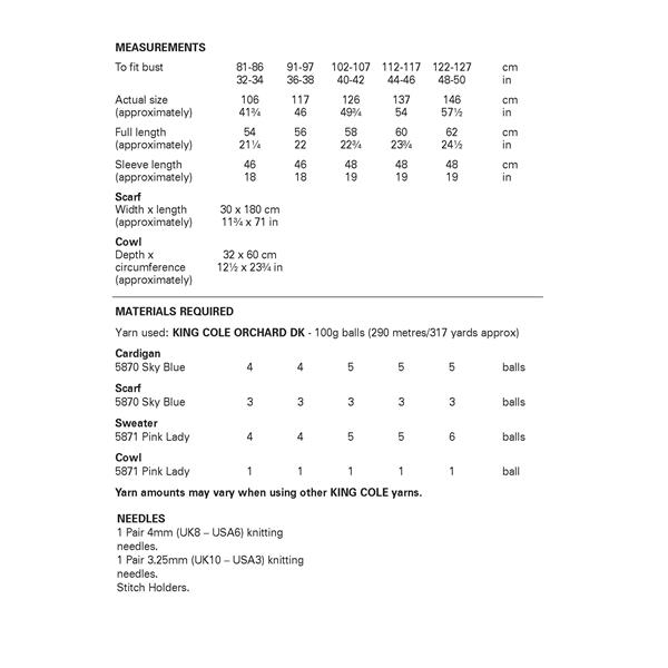 King Cole Pattern 6501 Scardigan and Sweater with Cowl in DK