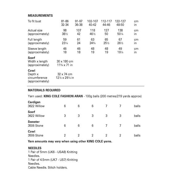• King Cole Pattern 6502 Scardigan and Sweater with Cowl in Fashion Aran