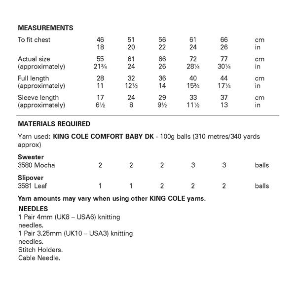 • King Cole Pattern 6531 Sweater and Slipover in Comfort Baby dk