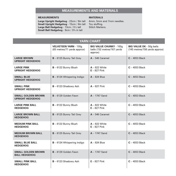 King Cole Pattern 9209 Hedgehogs in Velveteen