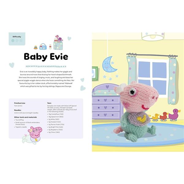 This collection of over 20 adorable toys features Peppa, George, Mummy Pig, Daddy Pig, and the newest addition, Baby Evie! Plus knit Peppa's playgroup friends including Suzy Sheep, Danny Dog, Emily Elephant and more. With clear instructions and step-by-step guidance, you'll learn how to create cute and cuddly knitted toys that are perfect for play or as special gifts.