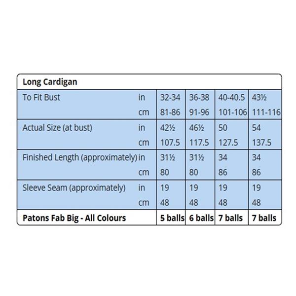 Women's Long Cardigan in Patons Fab Big - 4040 is a Knitting pattern by Patons, available as a Leaflet and includes instructions in English. Super fun to make, this pattern could be your next masterpiece!