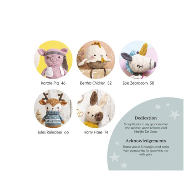 Femke Vindevogel invites you to crochet 10 irresistible animals, each one with its own uplifting story to tell. If you can't decide between Harry Hare and Bertha Chicken, or Albert Whale and Karate Pig, you'll just have to make them all!