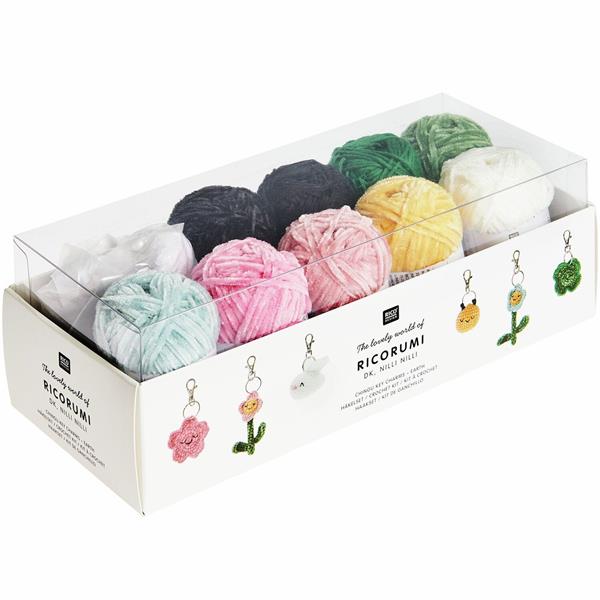 - The Ricorumi crochet kit "Keychains - Chingu Earth" contains materials and instructions for six different models. The combination of Ricorumi dk and Nilli Nilli yarn gives the keychains unique textures. The included key rings, stuffing, and matching needles allow you to start the projects right away.