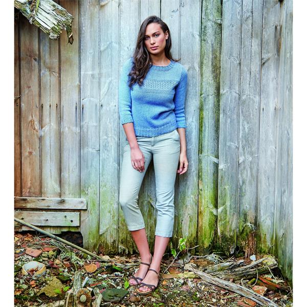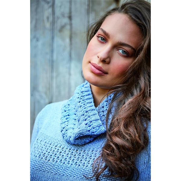 Modern Classic shapes with lace and texture stitch details. Relaxed styling with focus on the drape. The yarn knits lovely fabric and is ideal for this trans-seasonal collection.