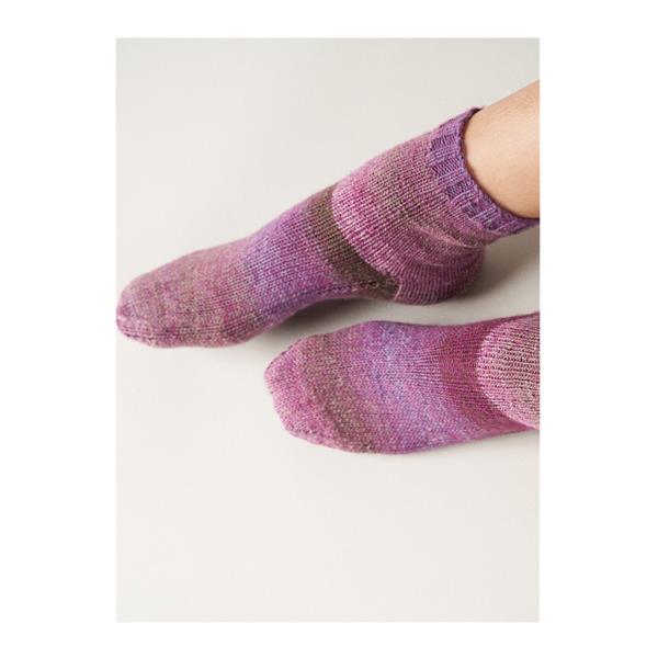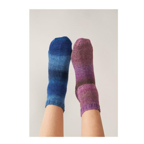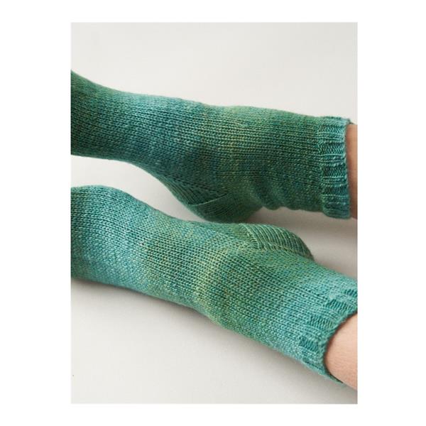 Simple is sometimes all you desire, and this pair of stocking stitch socks ticks that box nicely. Knitted in the round from cuff to toe, the simplicity of the stocking stitch is framed perfectly with a shallow 2x2 ribbed cuff. Knit this simple sock time, and time again, in fact why not have a pair in every colour!