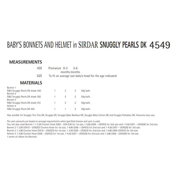 Sirdar Pattern 4549 CROCHET Baby Bonnets & Helmet in DK