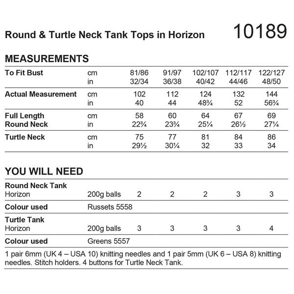 Stylecraft Pattern 10189 Round & Turtle Neck Tank Tops in Horizon Chunky