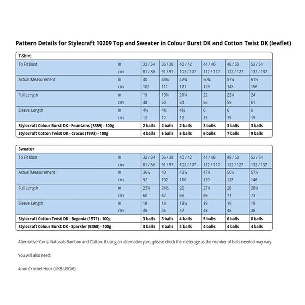 • Stylecraft Pattern 10209 Crochet T-Shirt & Sweater in Cotton Twist dk & Colour Burst dk