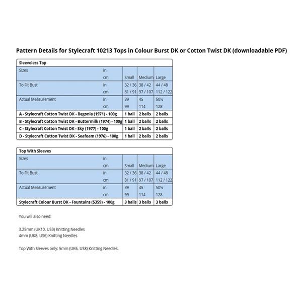 Stylecraft Pattern 10213 Tops in Cotton Twist dk & Colour Burst dk