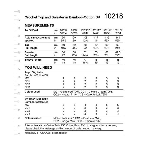 Stylecraft Pattern 10218 Crochet Top & Sweater in Bamboo+Cotton dk