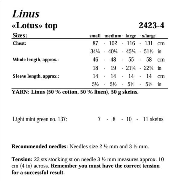 Viking Garn Pattern 2423-04a Lotus Top in Linus