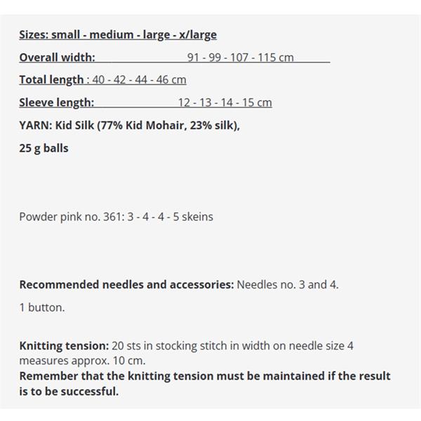 Viking Garn Pattern 2520-9 Skimmer Bolero in Kid Silk
